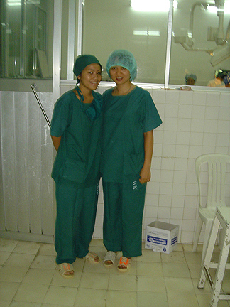I also had the opportunity to observe breast surgery, mostly lumpectomy. The characteristic surgical attire consisted of a green cotton shirt and pants, a matching headpiece, a surgical mask and white plastic sandals (no socks). This is rather odd for surgery, especially the sandals, since they are using dangerous surgical knives, etc. The surgery room is on a separate floor of the hospital and different types of surgeries are performed in different rooms (there are four rooms).